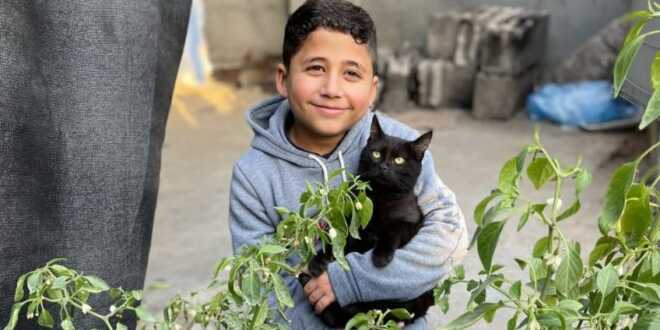 Las cosas mejoraron cuando, después de mucha búsqueda, Ahmed logró encontrar un gran costal de comida para Simba. Pero no solo ha alimentado al gatito: también transformó su azotea en una pequeña huerta, donde siembra hortalizas y cría gallinas para alimentar a su familia.