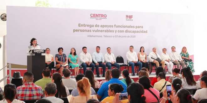 Villahermosa, Tab., 03 de junio de 2025.- Con el propósito de contar con una vida más plena y mayor autonomía en sus actividades cotidianas, 400 personas vulnerables y con discapacitad recibieron esta mañana apoyos funcionales como sillas de ruedas, andaderas, muletas y bastones durante una entrega encabezada por la presidenta municipal Yolanda Osuna Huerta.