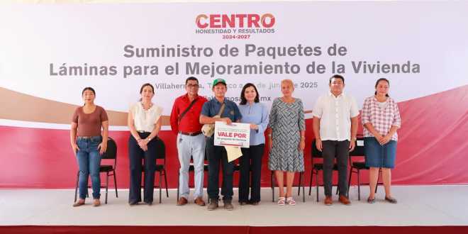 Por su parte, Carmen Guzmán León, titular de la Dirección de Desarrollo del Gobierno de Centro, puntualizó que el programa “Suministro de Paquetes de Láminas para el Mejoramiento de la Vivienda” busca aliviar la carga económica de las familias de Centro.