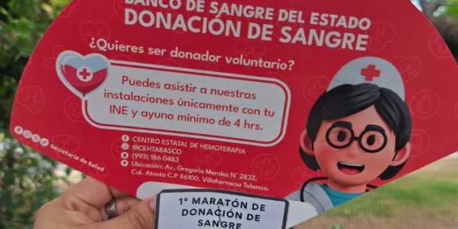 Con el objetivo de fomentar la cultura de la donación voluntaria y salvar vidas, la Secretaría de Salud de Tabasco, a través del Centro Estatal de Hemoterapia, invita a la población a participar en el 1er Maratón de Donación de Sangre, que se llevará a cabo del 10 al 12 de junio.