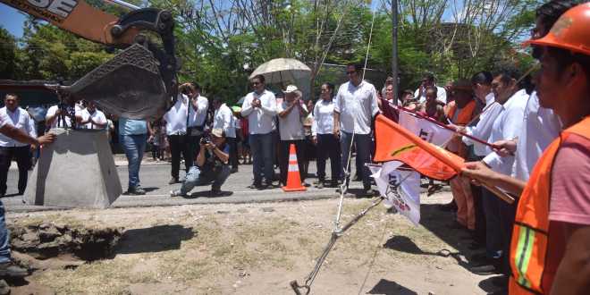 El operador de maquinaria Ataulfo esperó a que José enganchara el bloque de concreto para levantarlo justo cuando los banderines del Gobernador, el presidente municipal y el secretario de Obras, se agitaran en el aire. Entonces la base donde irá una luminaria fue alzada y colocada en un hueco previamente excavado. Los vecinos aplaudieron la maniobra.