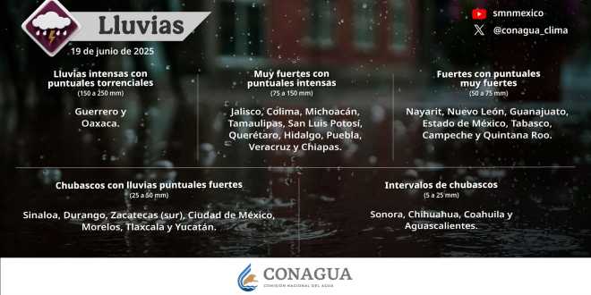 Las precipitaciones podrían generar deslaves, incremento en niveles de ríos y arroyos, así como desbordamientos e inundaciones en zonas bajas de los estados mencionados, por lo que se exhorta a la población a atender los avisos del SMN y seguir las recomendaciones de