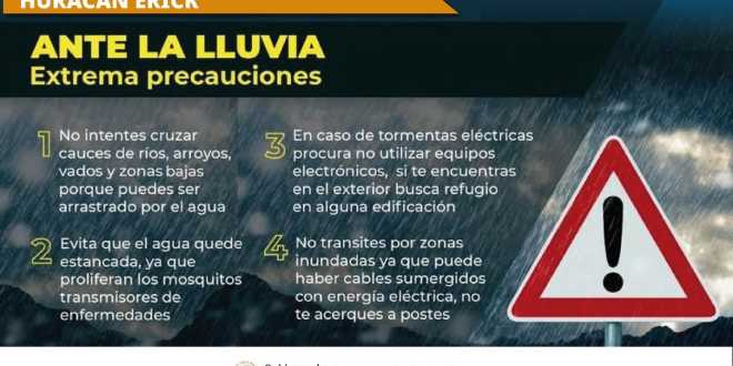 • Continúan los efectos del huracán Erick con lluvias y vientos en 14 municipios de Oaxaca y en 6 de Guerrero
