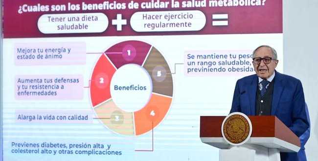 Durante la conferencia matutina: “Las mañaneras del pueblo”, encabezada por la secretaria de Gobernación, Rosa Icela Rodríguez Velázquez, en representación de la Presidenta Claudia Sheinbaum Pardo, el titular de la Secretaría de Salud explicó que la salud metabólica implica el funcionamiento óptimo de los procesos del cuerpo que transforman azúcares, grasas y proteínas en energía.