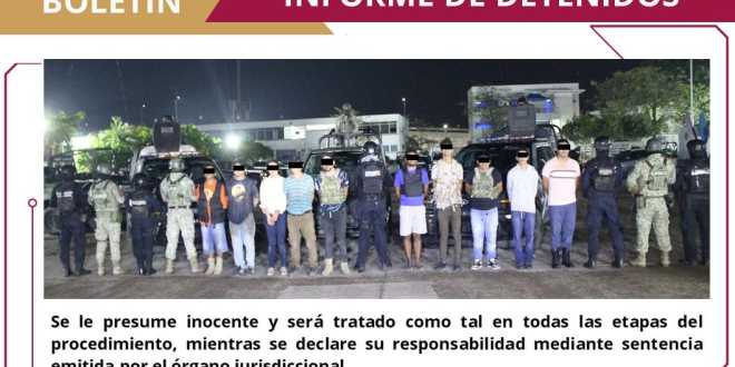 Derivado del recorrido como parte del Plan de Contención del Delito, la Secretaría de Seguridad y Protección Ciudadana (SSPC) y quiénes integran la Fuerza Interinstitucional de Reacción Táctica (FIRT) Olmeca, detuvieron en diferentes hechos a 10 masculinos y una femenina, como presuntos responsables de los delitos contra la Ley General de Salud, la Ley Federal de Armas de Fuego y secuestro.