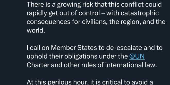 Existe un riesgo creciente de que este conflicto se descontrole rápidamente, con consecuencias catastróficas para la población civil, la región y el mundo.