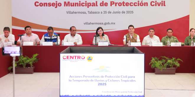La alcaldesa Yolanda Osuna Huerta encabezó la Tercera Sesión Ordinaria del Consejo Municipal de Protección Civil de Centro, en la que se dio a conocer las Acciones Preventivas para la Temporada de Lluvias y Ciclones Tropicales 2025, además de la aportación de 14 unidades automotrices entre los tres órdenes de gobierno para su uso de ser necesario.