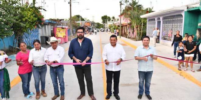 Más adelante, el Gobernador Javier May Rodríguez visitó la cabecera municipal de Tacotalpa, donde entregó la construcción de pavimento con concreto hidráulico, guarniciones, banquetas, obras complementarias y alumbrado público de la calle 2 de Abril.