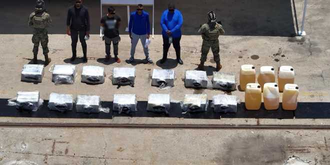 En el marco de la Estrategia Nacional de Seguridad, en una operación marítima encabezada por elementos de la Secretaría de Marina (Semar) a través de la Armada México en funciones de Guardia Costera, en coordinación con la Secretaría de la Defensa Nacional (Defensa), Fiscalía General de la República (FGR), Guardia Nacional (GN) y Secretaría de Seguridad y Protección Ciudadana (SSPC), detuvieron a cuatro personas y aseguraron aproximadamente 559 kilos de cocaína, 685 litros de combustible y una embarcación, en inmediaciones del Golfo de Tehuantepec, en costas de Oaxaca.