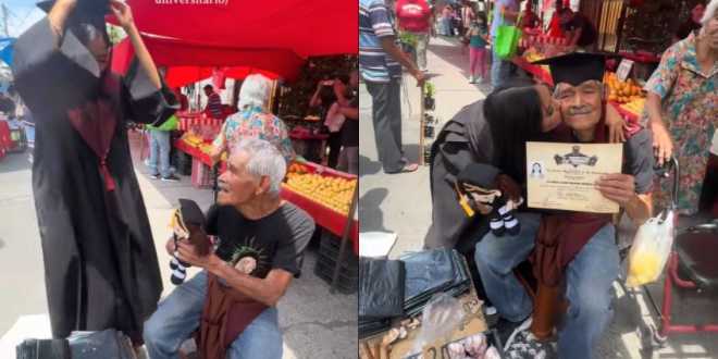 Se trata de una joven de nombre Mary Flores (@mariflores.24 en TikTok), quien compartió un video de pocos segundos, pero que duele toda la vida y que ya acumula más de 15 millones de reproducciones gracias a lo emotivo que resulta. En las imágenes se ve a la joven llegando al tianguis con su toga, birrete y diploma lista para sorprender a su abuelo.