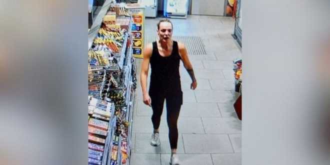 Imágenes de cámaras de seguridad la muestran con atuendo de corredora, vistiendo ropa de ejercicio negra y tenis deportivos, así como un teléfono en el muslo.
