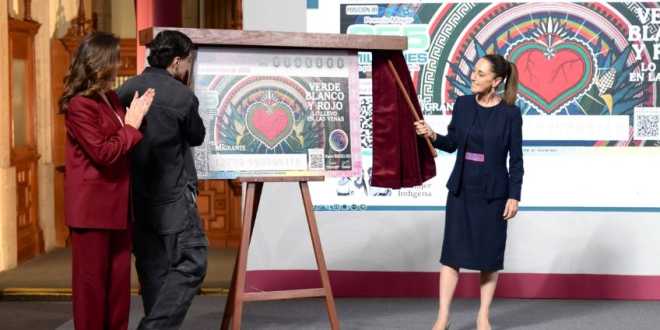 En la Mañanera de este 25 de julio fue develado el Billete del Gran Sorteo Especial del 15 de Septiembre en honor a los migrantes.