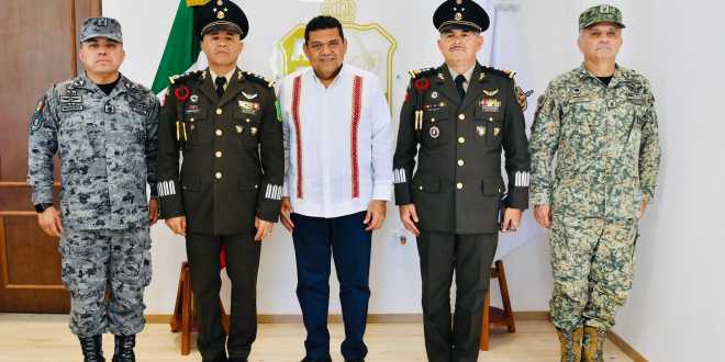 El gobernador del estado, Javier May Rodríguez, dio la bienvenida a nuevos mandos militares en la entidad. “Dimos la bienvenida al Gral. de Bgda. D.E.M. Antonio Ramírez Escobedo, quien tomó Protesta de Ley como Comandante de la 38ª Zona Militar, con sede en Tenosique, así como al Gral. de Bgda. D.E.M. Julio César Moreno Mijangos, nuevo Coordinador Estatal de la Guardia Nacional en Tabasco”, citó en sus redes sociales. El mandatario agregó que los generales fueron presentados en reunión con el Gral. de Brig. D.E.M. Alejandro Vargas González, Comandante de la VII Región Militar, en presencia del Comandante de la 30ª Zona Militar, Gral. Miguel Ángel López Martínez. “En el Gobierno del Pueblo y la Secretaría de la Defensa seguiremos implementando las estrategias coordinadas para que la paz continúe en Tabasco”, puntualizó.