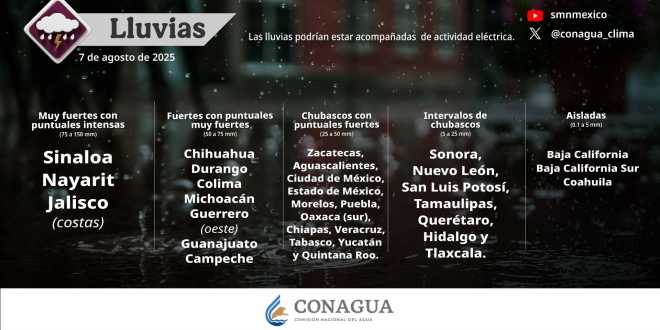Mantente informado en las páginas www.gob.mx/conagua y https://smn.conagua.gob.mx, en las cuentas de X @conagua_mx y @conagua_clima, y