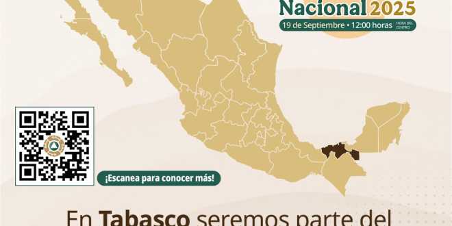 El estado de Tabasco se sumará al 2° Simulacro Nacional 2025, que se realizará el próximo 19 de septiembre a las 12:00 horas, con la hipótesis de un sismo de magnitud 8.1.