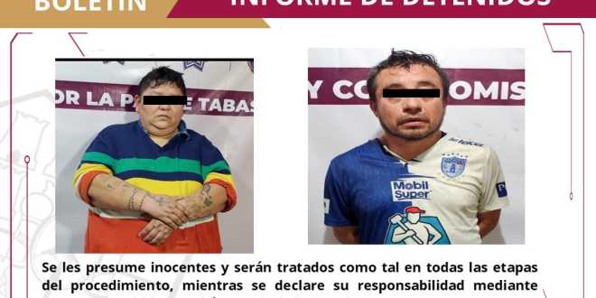 En el marco de la Estrategia Nacional contra la Extorsión y acciones de contención del delito, elementos del Grupo Especial Tabscoob de la Secretaría de Seguridad y Protección Ciudadana (SSPC), en coordinación con la Fuerza Interinstitucional de Reacción Táctica (FIRT) Olmeca, logró la detención de dos personas por su probable participación en delitos contra la salud y portación de armas de fuego.