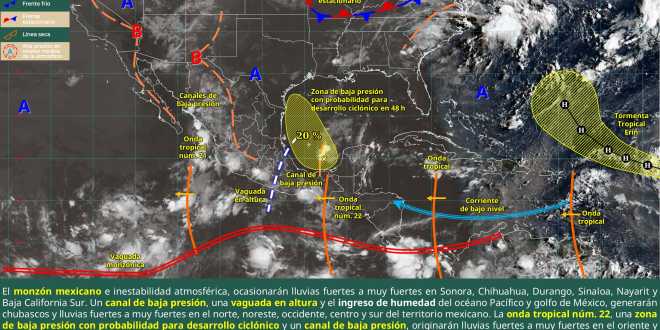 Las condiciones anteriormente descritas, serán originadas por el monzón mexicano, inestabilidad atmosférica, canales de baja presión al interior del país, una vaguada en altura, el ingreso de humedad del océano Pacífico y golfo de México, la onda tropical