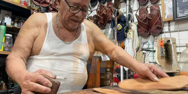En el mercado José María Pino Suárez trabaja don Juan José Moreno Becerra, talabartero de 84 años, quien continúa ganándose la vida con esfuerzo y dedicación.
