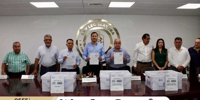 La documentación fue entregada al presidente de la Jucopo, Jorge Orlando Bracamonte, de manos del titular del OSFE, Juan José Peralta Fócil; en esta se detallan los informes técnicos, financieros y del desempeño de los recursos ejercidos por los entes fiscalizables de la administración pública del estado.