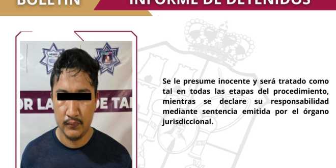 La Secretaría de Seguridad y Protección Ciudadana (SSPC) en coordinación con la Fuerza Interinstitucional de Reacción Táctica (FIRT) Olmeca detuvieron a un masculino por delitos contra la salud.