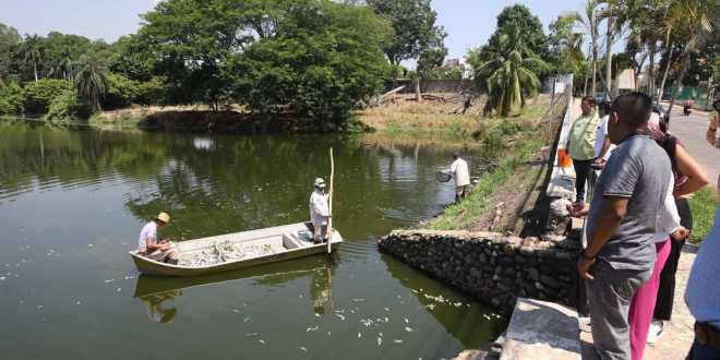 Derivado de la mortandad de peces registrada la mañana de este lunes 08 de septiembre en la Laguna de las Ilusiones, un equipo de la Secretaría de Medio Ambiente y Desarrollo Sostenible, encabezados por su titular Sheila Cadena Nieto, acompañados de personal especializado de la División Académica de Ciencias Biológicas de la UJAT, coordinados por el Dr. Arturo Garrido Mora, realizaron un recorrido donde se monitorearon los parámetros físicos con ecosonda, sonda multiparamétrica y disco de Secchi; además, se tomaron muestras para análisis químicos del cuerpo de agua, así como la recolección de una parte de las especies impactadas, Bagre y Arenga o Sardina Amarilla (Cathorops aguadulce y Dorosoma petenense).