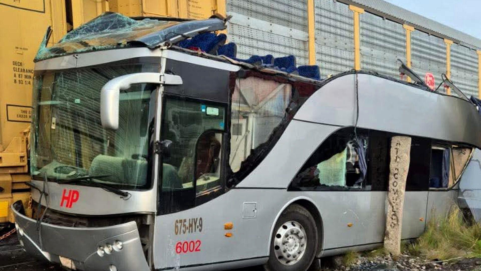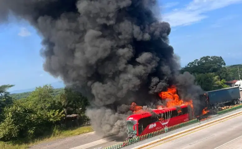 El autobús se incendió tras el choque y los pasajeros escaparon por las ventanas. El saldo fue de 14 lesionados y el conductor del tráiler murió.