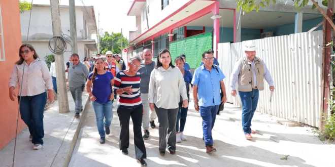 En el primer punto de la gira, la edil constató los trabajos en las cerradas 9, 10 y andador 7, ubicadas entre la calle Asunción Castellanos y el camellón de defensa. Según vecinos y la delegada municipal Delia del Carmen Reyes Barqueiro, estas vialidades permanecieron en terracería por más de 40 años.