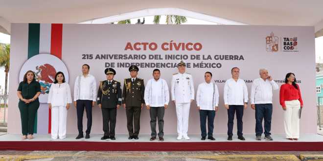 El Gobernador Javier May Rodríguez encabezó el acto cívico conmemorativo del 215 aniversario del inicio de la Guerra de Independencia de México, durante una ceremonia en la que se destacó que en Tabasco se honra la historia de los héroes insurgentes y, con un Gobierno del Pueblo, se retoma el ejemplo de que la justicia también se construye con cercanía a la gente; desde el territorio, con obras que transforman comunidades, y con una visión que devuelve dignidad a nuestra tierra.