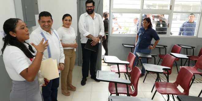 «Este esfuerzo que hacemos es parte del compromiso que tenemos con ustedes jóvenes y con los tabasqueños. Háganlo suyo, porque aquí se forman conocimientos y valores, y les da las herramientas de aspirar a mejores oportunidades laborales, sociales y económicas, además de que los mantiene alejados de conductas antisociales», subrayó en presencia de la secretaria de Educación estatal, Patricia Iparrea Sánchez.