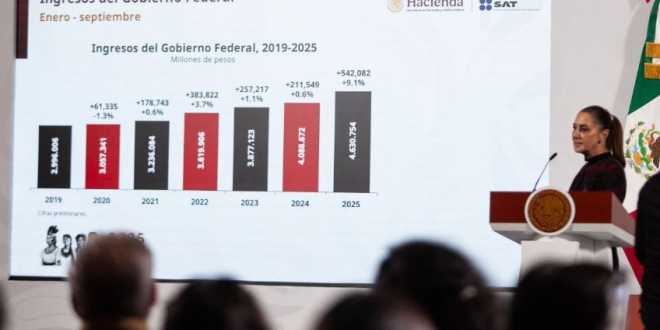 Los resultados de la recaudación del 2025 y lo que se tiene contemplado para 2026 fueron presentados en la Mañanera de este 9 de octubre de 2025. La presidenta Claudia Sheinbaum calificó como históricas las cifras del año en curso, que son más de 500 mil millones de pesos extra.