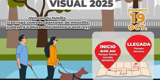 Detalló que la caminata iniciará a las 8:00 horas, partiendo del parque Tomás Garrido Canabal (debajo del puente MUSEVI), y concluirá en el parque Morelos, ubicado en la avenida 27 de febrero esquina con Ignacio López Rayón. Además, se desarrollarán actividades alusivas a la vida cotidiana de las personas con debilidad visual, con el objetivo de fomentar la empatía y la inclusión.