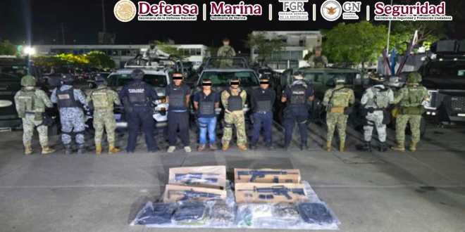A las cuatro personas se les aseguraron cuatro armas largas, cuatro cargadores, 40 cartuchos útiles, dos bombas molotov, 200 dosis de marihuana y 50 de cristal, así como cuatro chalecos tácticos.