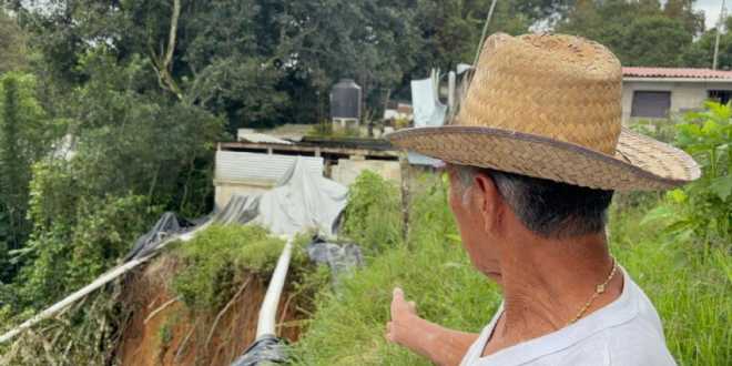 Sus ojos, testigos de más de cuatro décadas en ese mismo suelo, miran con una mezcla de dolor y terquedad el abismo abierto a sus pies: un socavón que, desde 2021, tras el paso del huracán “Grace”, amenaza con devorar su hogar.