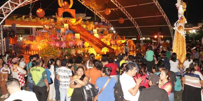 Un lleno total se registró en el Parque Independencia, donde las familias disfrutaron de la exposición de un altar en forma de la pirámide del sol, símbolo de nuestros ancestros y de nuestras tradiciones, que rinde homenaje a los seres queridos que han partido.