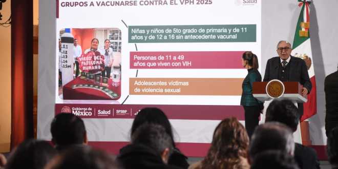 El secretario de Salud, David Kershenobich, durante la Conferencia del Pueblo, destacó los avances de la Campaña Nacional de Vacunación contra el Virus del Papiloma Humano (VPH) 2025, que busca proteger a niñas y niños de quinto grado de primaria y de 11 años no escolarizados, así como a adolescentes y personas con VIH.