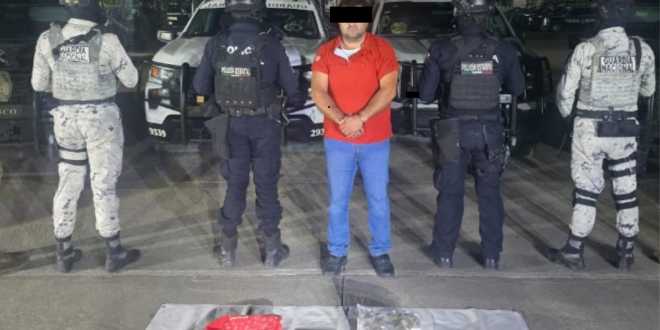 En recorridos de seguridad y en el marco de la Estrategia Nacional Antiextorsión y del Plan de Contención que implementa la Secretaría de Seguridad y Protección Ciudadana (SSPC) en coordinación con la Fuerza Interinstitucional de Reacción Táctica (FIRT) Olmeca, llevaron a cabo la detención de un masculino por presunto delito Contra la Ley General de Salud.