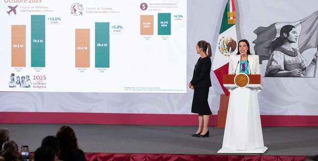 El Gobierno de México, a través de la Secretaría de Turismo, informó que octubre de 2025 registró un récord histórico con la llegada de 8.3 millones de visitantes internacionales a México, lo que representa un incremento de 10.7 por ciento respecto al mismo mes de 2024, así como en su derrama económica con 2 mil 440 millones de dólares (mdd), lo que significó 9.3 por ciento adicional. Mientras que, de enero a octubre de 2025, ingresaron al país 79.3 millones de visitantes internacionales, lo que representa un incremento de 13.6 por ciento respecto al mismo periodo en 2024.