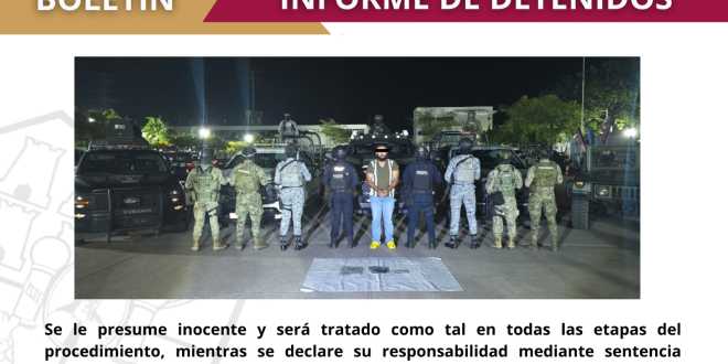 El detenido, junto con los indicios asegurados, fue puesto a disposición de la autoridad competente para la integración de la carpeta de investigación correspondiente y el seguimiento legal conforme a derecho.