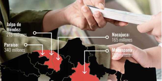 Según el desglose de la deuda, el Ayuntamiento de Paraíso, encabeza la lista con casi 340 millones de pesos de deuda; le sigue Jalpa de Méndez, con 215 millones de pesos; Nacajuca, 165 millones; y Macuspana, con 150 millones.