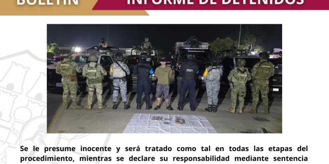 El detenido y los indicios asegurados fueron puestos a disposición de la autoridad competente para las investigaciones correspondientes.