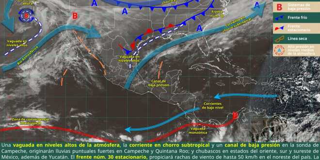 en la sonda de Campeche, el sistema frontal número 30 que se mantendrá