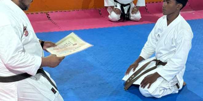 Bajo las órdenes del profesor José Antonio Orrante Weber Burque, el karateca y alumno de nivel bachillerato se empleó a fondo demostrando sus mejores técnicas en el tatami sobresaliendo en este deporte marcial japonés de armas tradicionales.