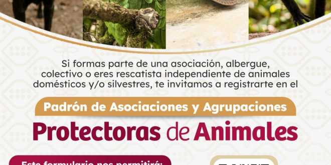 Con el objetivo de fortalecer las acciones de protección y bienestar animal en el estado, la Secretaría de Medio Ambiente y Desarrollo Sostenible (SEMADES) anuncia el lanzamiento del Padrón de Asociaciones y Agrupaciones Protectoras de Animales, una herramienta que permitirá contar, con una base de datos actualizada y confiable de las organizaciones, colectivos, albergues y personas rescatistas que trabajan en favor de los animales, tanto de manera formal como informal.