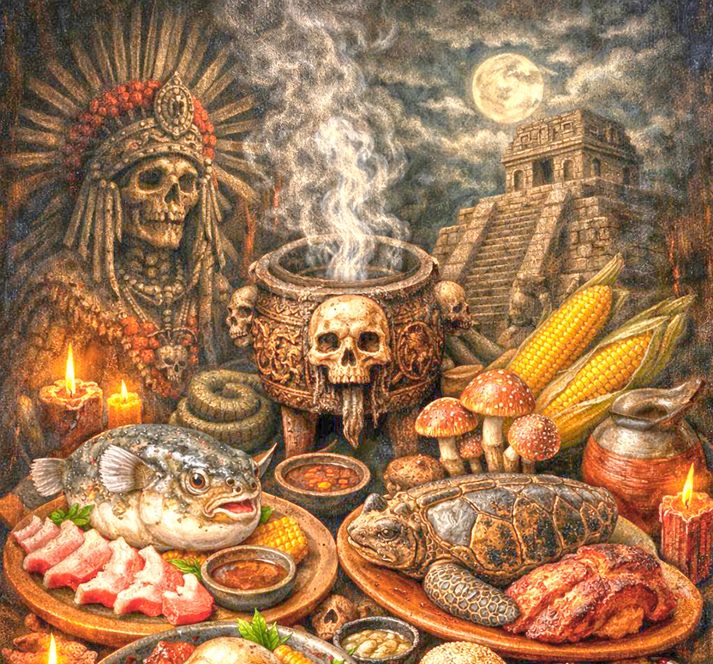 Canibalismo ritual en el México prehispánico, cuando el guiso era sagrado: En varias culturas mesoamericanas, especialmente entre los mexicas, el consumo de carne humana no era cotidiano ni gastronómico, en el sentido moderno; era ritual, simbólico y profundamente religioso; comer esos guisos no era alimentarse, más bien era participar del dios, absorber su fuerza, su esencia y su destino; la carne humana no se vendía, no se elegía y no se repetía; se comía una vez, en un contexto sagrado. Por eso, para los mexicas, no era canibalismo, sino comunión.