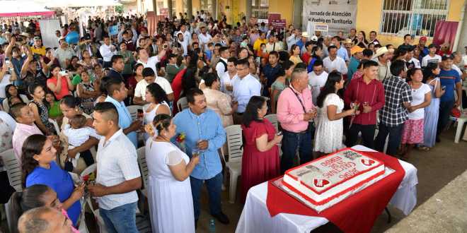 En pleno Día del Amor y la Amistad, Ana Ruth González, vestida de blanco, y su compañero Nahum, de guayabera con bandas floreadas a los costados, se dieron el “sí” en una boda colectiva de 45 parejas, que tuvo lugar en la Jornada de Atención en el poblado de Mecatepec, municipio de Huimanguillo.