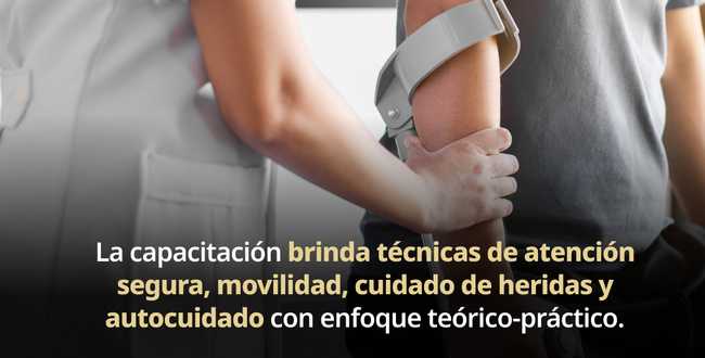 Agregó que el curso es impartido por un equipo de especialistas en rehabilitación, psicología, nutrición y fisioterapia, que brindan herramientas de formación teórico-práctica, enseñanza de técnicas para el cuidado de heridas, movilización y movilidad segura de las y los pacientes, así como capacitación en traslados adecuados para prevenir lesiones tanto en la persona cuidadora como en el paciente.