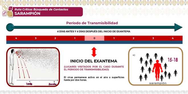 Detalló la ruta crítica establecida ante casos probables, que incluye cerco sanitario en 25 manzanas, seguimiento a contactos por 30 días y más de 25 mil visitas domiciliarias realizadas. “El sarampión es una enfermedad muy contagiosa, el periodo que se transmite esta enfermedad es cuatro días antes y cuatro días después del exantema”, advirtió.