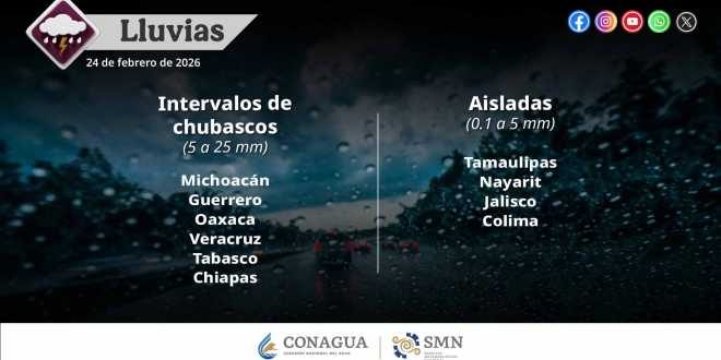 generarán chubascos (de 5 a 25 milímetros [mm]) en Michoacán, Guerrero, Oaxaca,