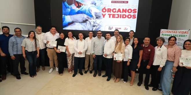 Con un llamado a las y los tabasqueños, a no dejar de hablar del tema de la donación y el trasplante de órganos y tejidos principalmente al interior de las familias, pues solo así se habrá mayor conciencia de la importancia que tiene este acto de amor para salvar la vida de hasta 8 personas; este jueves el secretario de Salud, Alejandro Calderón Alipi, encabezó la conmemoración del Día Mundial del Trasplante de Órganos y Tejidos 2026.