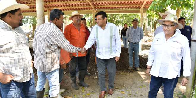 “¡Buenas tardes, mucho gusto. ¿Cómo estamos?”, saludó el mandatario a la titular de la Secretaría de Desarrollo Agropecuario y Pesca (SEDAP), Luisa del Carmen Cámara Cabrales, acompañada por el subsecretario de Ganadería, Joaquín Alejandro Ligonio, y el subsecretario de Desarrollo Rural y Pueblos Indígenas, dependiente de la Secretaría de Bienestar, Julio César Gerónimo Castillo.
